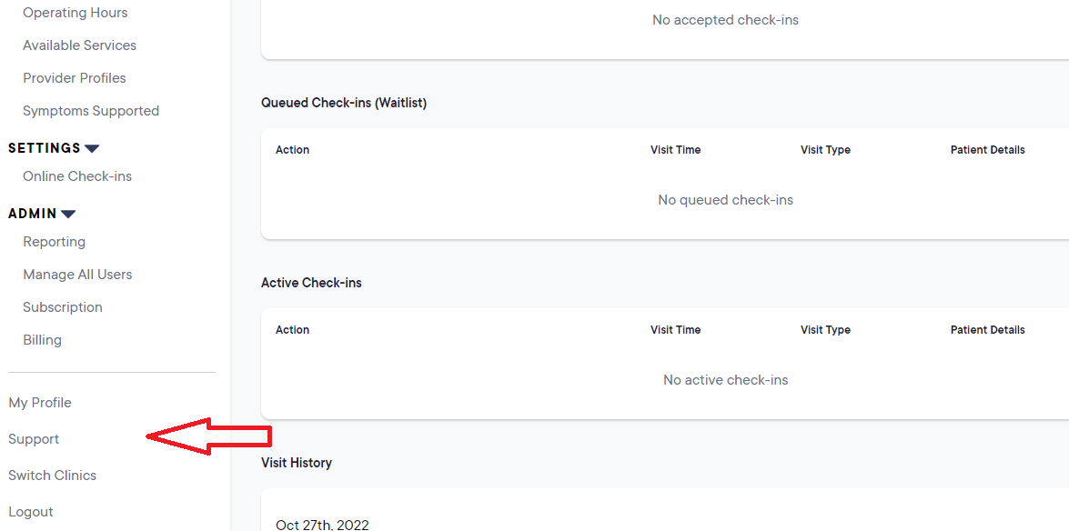 2. Click Support in the left side menu.
